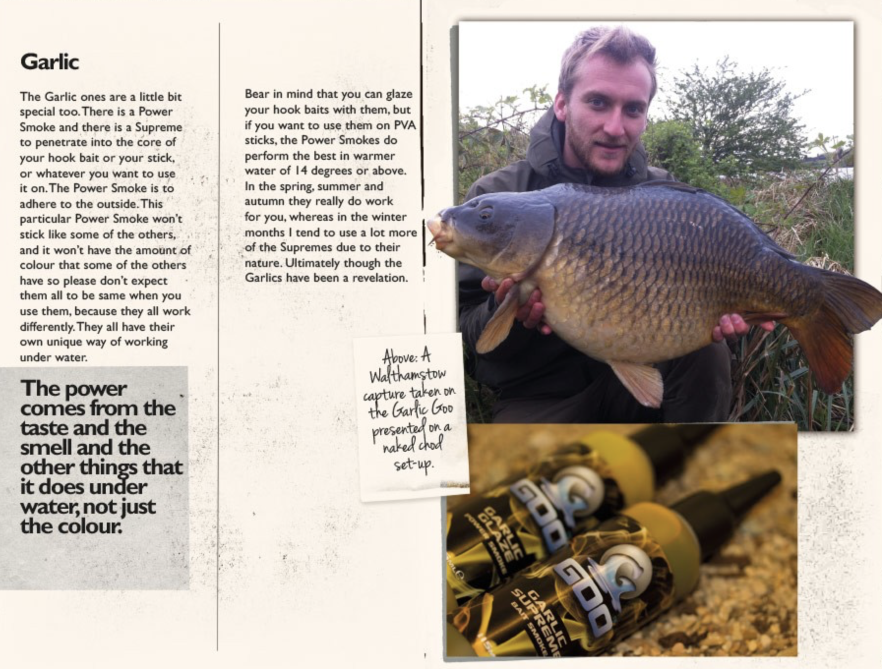 Korda Goo Garlic Supreme Bait Smoke face parte din gama Goo Phase Three, fiind o aroma consacrata si foarte apreciata de pescarii de crap.. Acest lichid poate fi folosit ca dip in saci PVA sau ca aditiv suplimentar pentru boilies-uri si pelete (in special pentru momeala de carlig). Odata ce a ajuns in apa, nada sau momeala impregnata va elibera un nor extrem de eficient in stimularea instinctului de hranire al crapilor.
